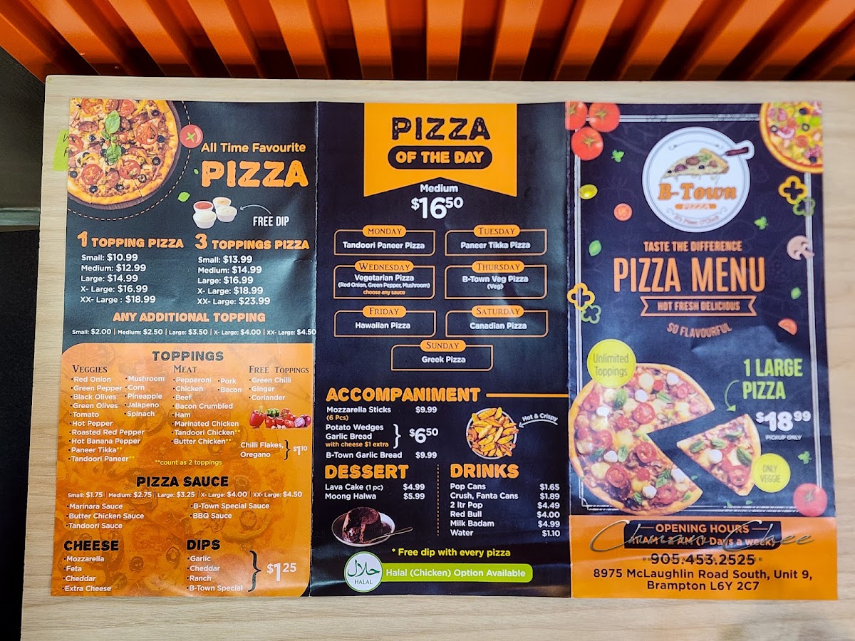 Welcome to B-Town Pizza, a vibrant new eatery located at 13 Elm St, Toronto. As you step inside, the warm ambiance and friendly staff invite you to explore a menu brimming with flavor. B-Town Pizza is renowned for its inventive pizzas, especially the heart-shaped creations that make perfect gifts for loved ones—think large cheese, pepperoni, paneer, and a delightful butter chicken option, all expertly crafted for just CA$24.99 to CA$29.99.
